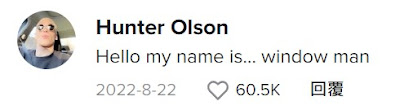 當晚不願透露自己名字的窗戶哥也在底下留言:「嗨,我的名字叫‧‧‧‧‧‧窗戶哥。」